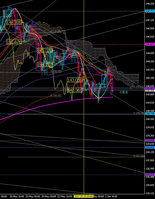 ユーロ円はMAに絡んでもみ合いの動きでしょうか。